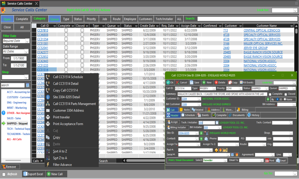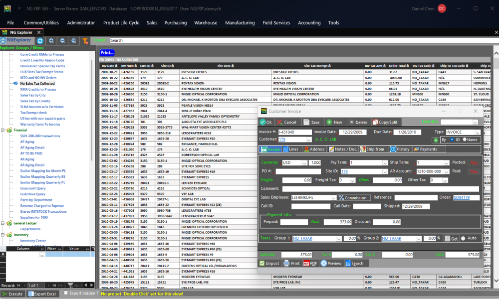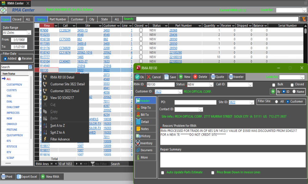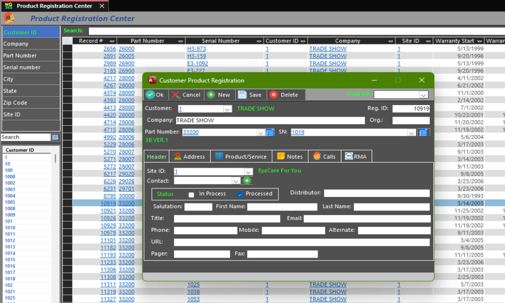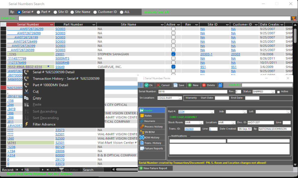 • quickly search records by customer, location, item, sales order, serial number, etc.