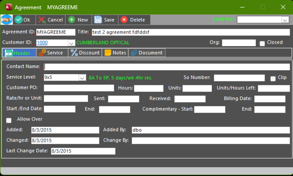 Service Agreements are typically contracts to provide on-site and/or phone support for a given company.