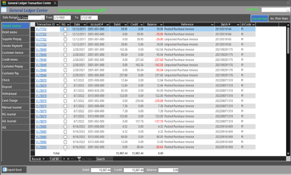 NG 365 Features over 120 standard reports. In addition, the easy-to-use report writer allows custom reports, providing easy access to your most important data. NG 365 also supports the use of Crystal Reports and comes "out of the box" including excel financial statements that allow you to use your imagination and create a fully customized profit and loss, balance sheet statements, with/without budget and more.