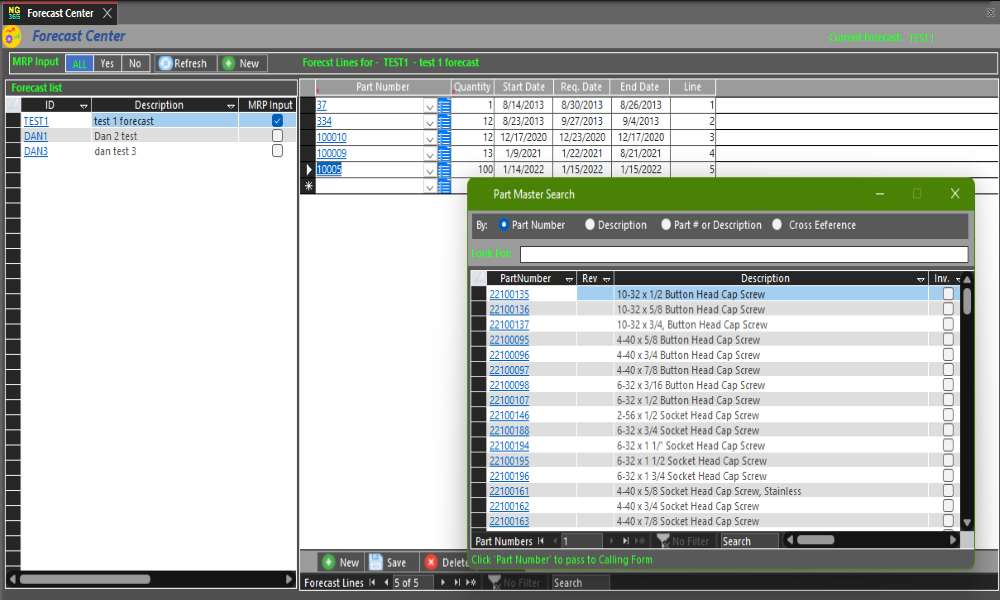 NG 365 enables you to build sales forecasts and combine them with existing sales orders to generate forecast demand for product within the Master Production Schedule. Build multiple forecasts and perform what-if scenarios to simulate the impact on your operation before committing to a build plan.