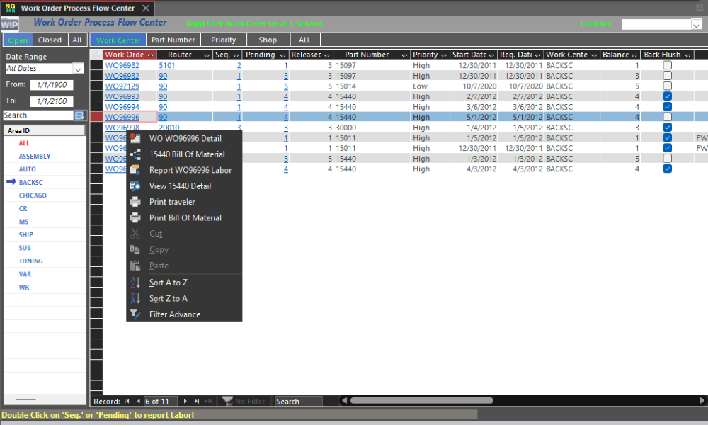 NG 365 allows you to schedule your work centers in the most efficient manner possible. View your work center load line-by-line, or graphically. Spotting peaks and valleys in your schedule enables smoothing of production.