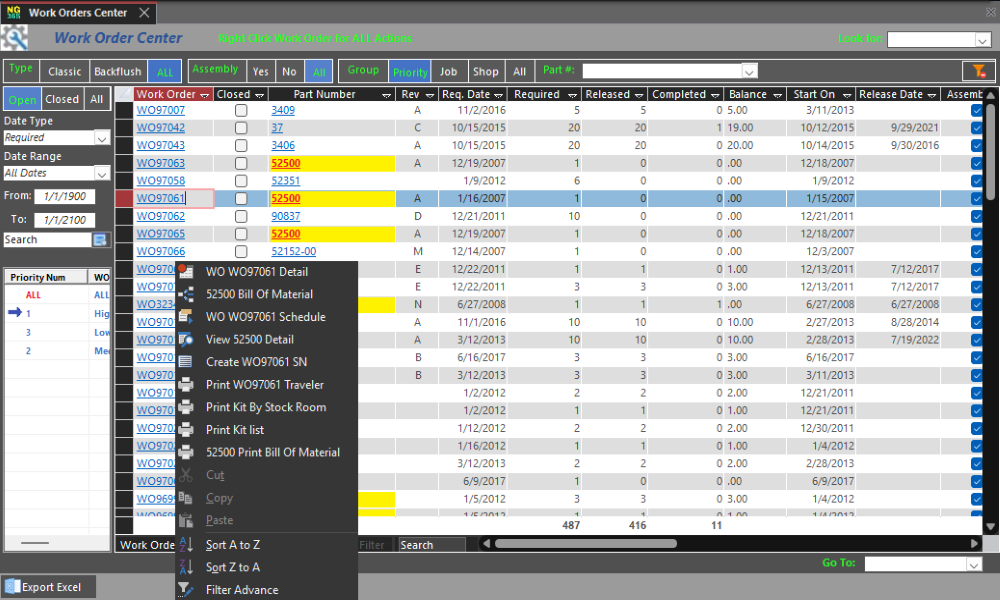 Traditional MRP applications present results in static reports. NG 365 results are presented in a variety of online Views/Centers for quick and reliable execution. Create, delete, and reschedule Work Orders and Purchase Orders in real time and on-the-fly.